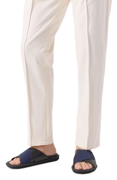 Шлепанцы Erik на резиновой подошве выполнили из мелкозернистой кожи. Формованную стельку модели и патинированную союзку, форма которой напоминает ремешки фирменных монков, украсили логотипом бренда.