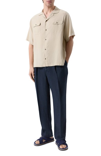 Шлепанцы из коллекции Riviera Hello Capri выполнили из прочной воловьей замши. Модель установили на подошву из EVA с резиновым протектором и формованной стелькой с золотистым логотипом.