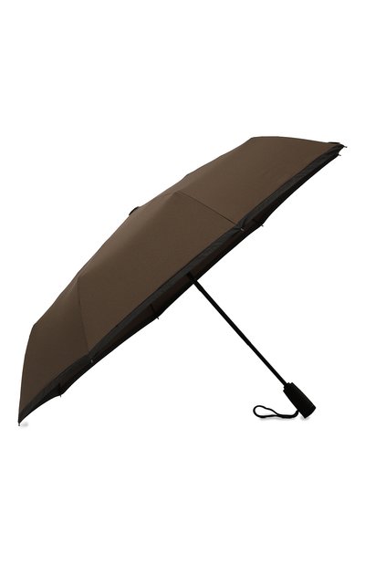 Брендированный купол зонта-автомата сшили из быстросохнущего полиэстера. Из такого же материала выполнили два входящих в комплект чехла на молниях. Аксессуар дополнили цилиндрической матовой ручкой с кнопкой-автоматом и петлей.