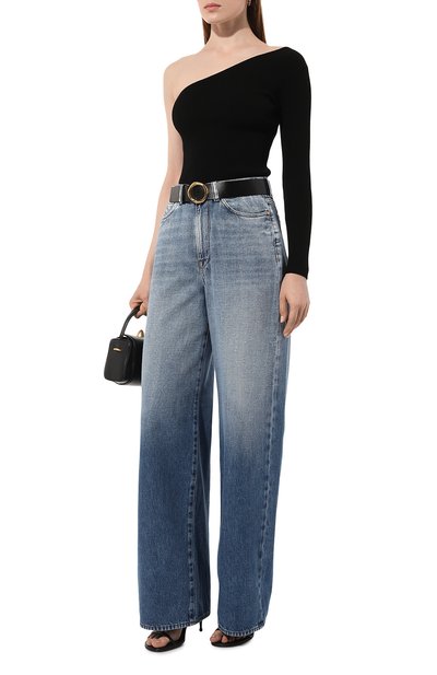 Топ с высокими боковыми разрезами выполнили из полупрозрачного тюля в горох. Брендированную этикетку пришили фирменной красной нитью с изнанки модели.