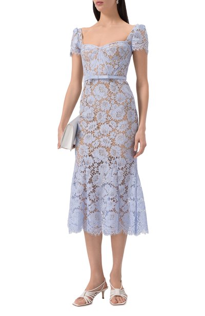 Платье Greba с широкой оборкой на подоле и квадратным декольте, продублированным сзади, выполнили из микса хлопка и льна с английской вышивкой. Модель с эластичной вставкой сзади застегивается пуговицами на кружевной планке.
