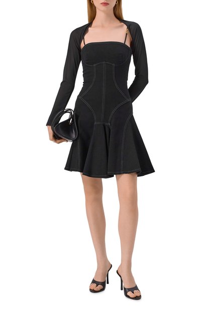 Приталенное мини-платье Birdie с глубоким фигурным вырезом сшито из тонкого микса хлопка и льна с вышивкой сангалло. Модель с эластичными вставками на облегающем лифе застегивается потайной молнией сзади.