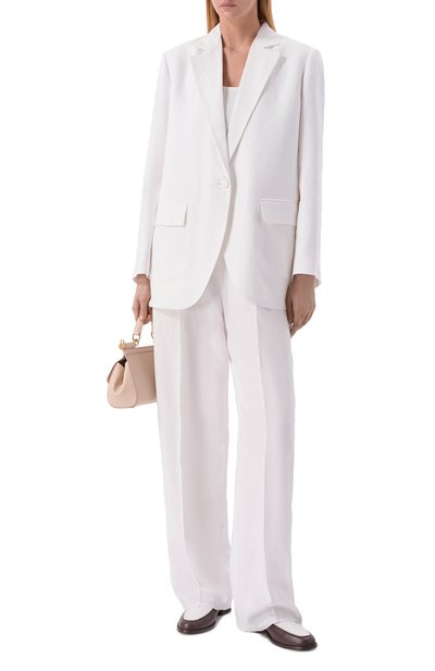 Брюки из шелкового атласа в асимметричную полоску составят графичный аутфит с парным топом. Модель с эластичным поясом-кулиской дополнили боковыми и задними карманами.