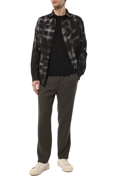 Меланжевая футболка свободного кроя выполнена из пенькового джерси с добавлением льна и полиамида. Модель со вставками на рукавах и круглым вырезом в рубчик гармонично впишется в базовый гардероб.