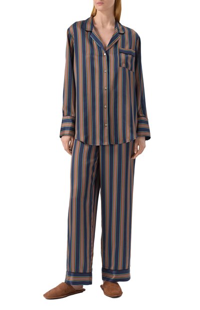 Брюки Isola с защипами выполнили из шелкового твила с принтом Celestial Copper. Широкую модель дополнили двумя боковыми карманами и поясом с эластичной вставкой сзади.