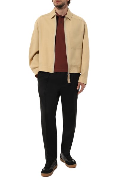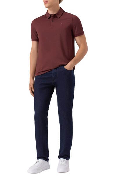 Поло Prout прямого кроя выполнили из фактурного хлопкового трикотажа. Модель с короткими разрезами по бокам и контрастным кантом на воротнике декорировали фирменной этикеткой в боковом шве.