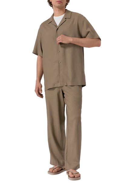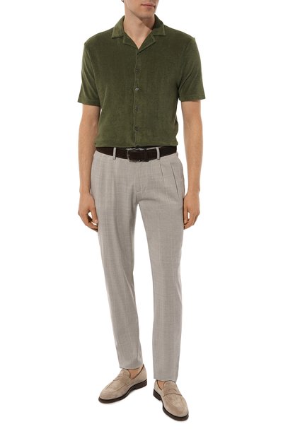 Рубашку прямого кроя сшили из эластичного хлопкового поплина Easy Iron. Модель с воротником кент и закругленным подолом застегивается перламутровыми пуговицами.