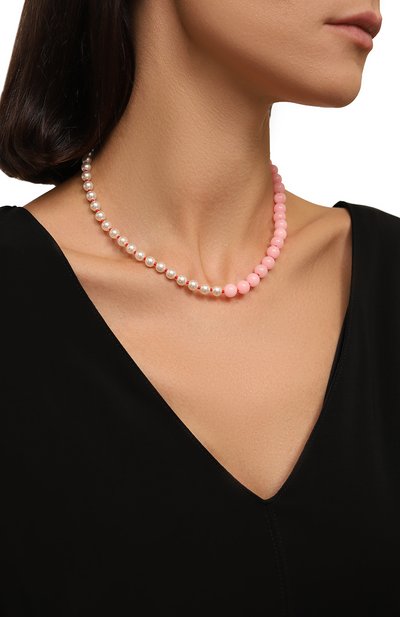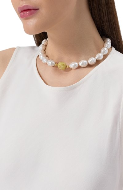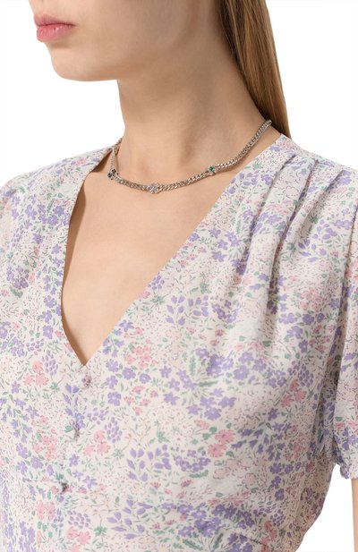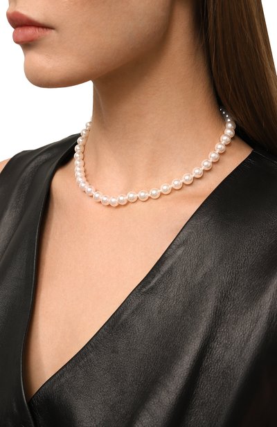 Колье собрано вручную из полированных бусин оникса. Украшение застегивается замком в форме цветка клевера, выполненным из родированного металла.