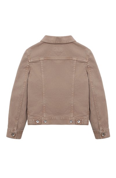 Выбеленную джинсовую куртку с потертостями украсили вышитым логотипом, дополненным изображением пальм. Модель с четырьмя карманами выполнили из облегченного стрейчевого денима.