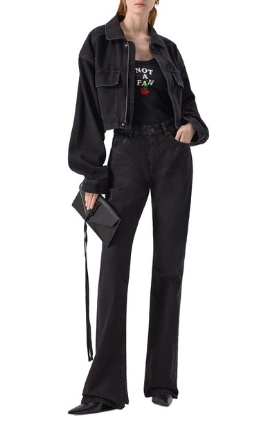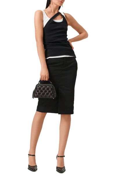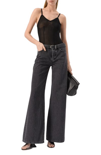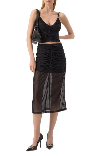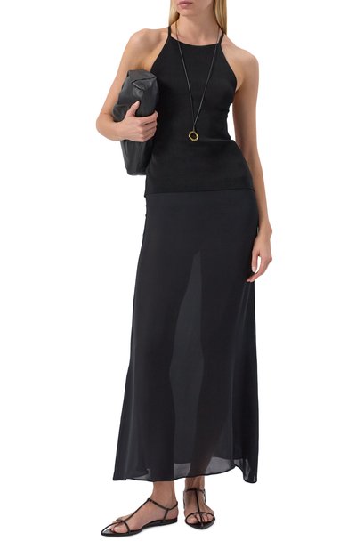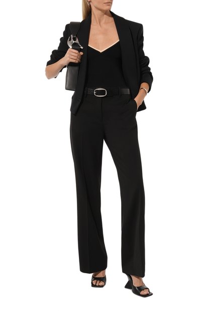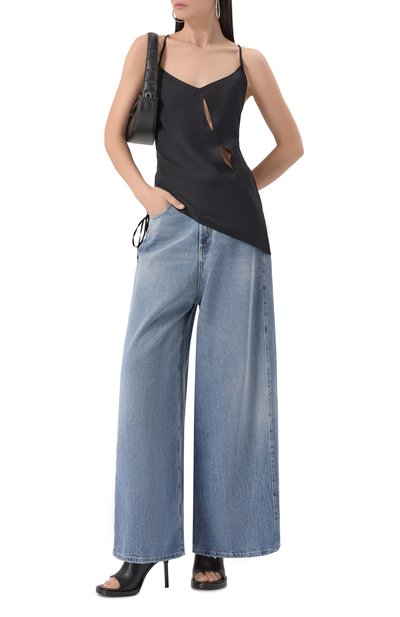 Облегающий топ с глубоким круглым вырезом выполнили из стрейчевого джерси на основе лиоцелла. Сбоку модель дополнили кулиской, регулируемой лентой.