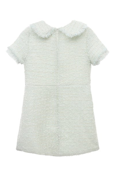 Для изготовления платья использовали хлопковый трикотаж. Отложной воротник украсили полосатой оборкой, зарифмованной с вышитым спереди логотипом марки.