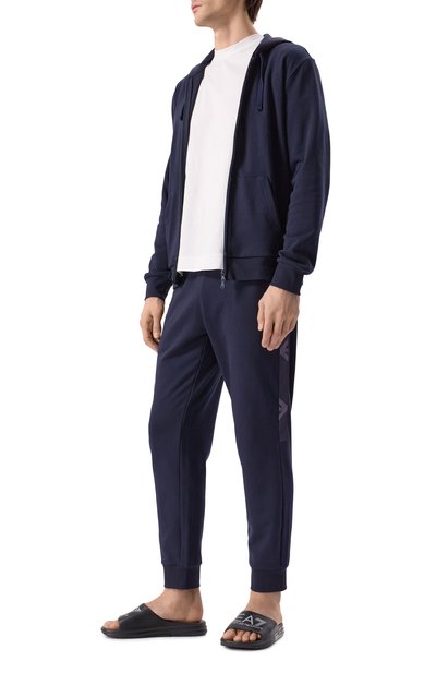 Шлепанцы с рельефной формованной стелькой выполнены из легкого полимерного материала. Широкая перемычка обуви украшена крупной эмблемой марки.