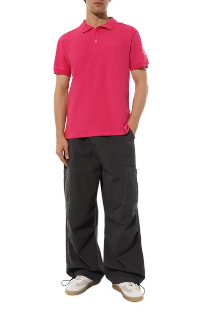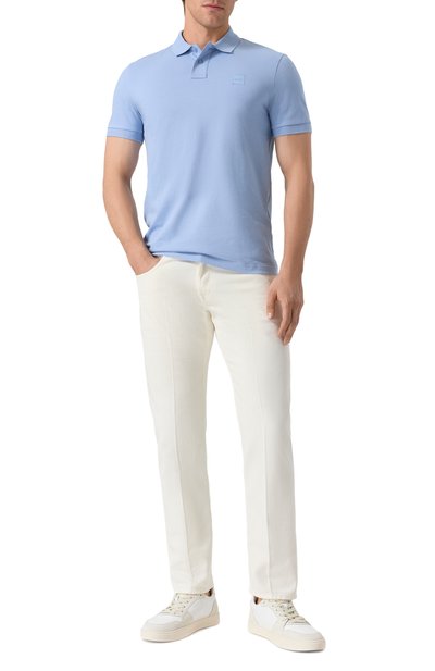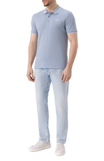Поло с отложным воротником и манжетами в рубчик изготовили из хлопкового пике. Модель, застегивающуюся тремя перламутровыми пуговицами, украсили патчем с фирменной эмблемой.