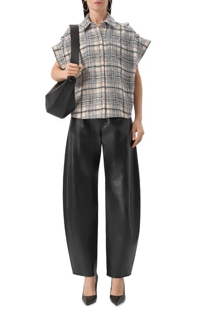 Брюки с двумя боковыми карманами выполнили из ткани на основе лиоцелла и вискозы. Модель с эластичным поясом составит гармоничный дуэт с парной рубашкой.