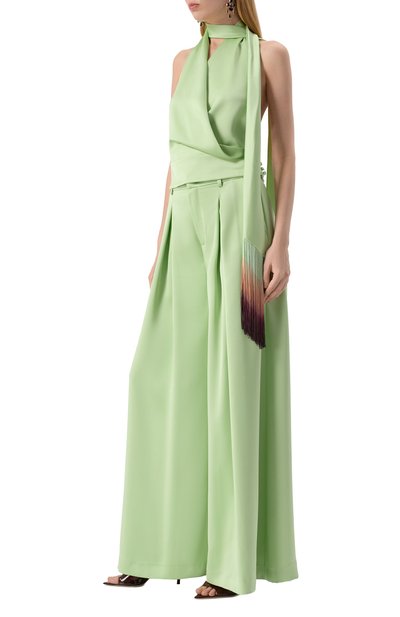 Для пошива эластичной пижамы Sicomoro использовали джерси из модала и лайкры. Футболку с ажурным круже вом вдоль выреза дополнили брюками прямого кроя.
