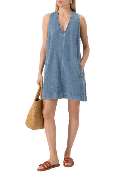 Сандалии с регулируемым двойным ремешком изготовили из плотного денима. Модель с формованной стелькой поставили на подошву с глубоким протектором.