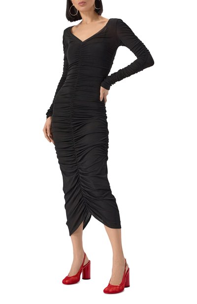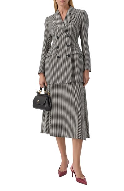 Туфли Chanel с зауженным мысом изготовили из лаковой телячьей кожи. Модель на высокой шпильке застегивается узким ремешком с небольшой пряжкой.