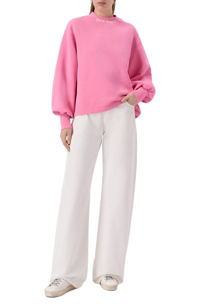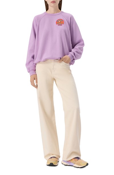 О принадлежности свитшота коллекции Summer Lovers напоминает разноцветная вышивка на нагрудном кармане. Укороченную модель кроя oversize выполнили из японского хлопкового флиса, а для широкой горловины, манжет и пояса выбрали ребристый трикотаж в тон.