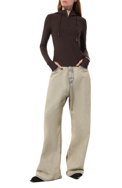 Худи свободного кроя выполнили из органического хлопкового т рикотажа. Модель с капюшоном и спущенной линией плеч дополнили поясом-кулиской и контрастной брендированной вышивкой.