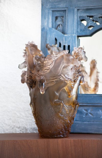 Монументальная голова лошади весом 20 кг, созданная по проекту Марка Лалика 1953 года, демонстрирует исключительное мастерство ремесленников марки. Подобно скульпторам, стеклодувы вручную вырезали ее из чистейшего прозрачного хрусталя, затратив на эту работу более трех дней. Затем изделие в течение многих часов полировали, чтобы придать ему завораживающий глянцевый блеск.