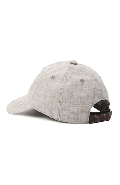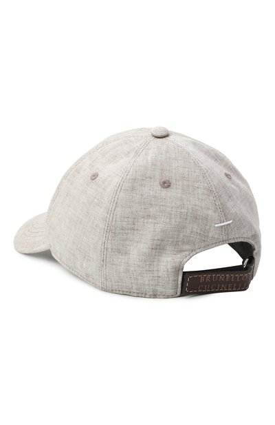 Бейсболка с вышивкой Surf Solomeo Club органично завершит непринужденный летний образ. Аксессуар с брендированным кожаным ремешком велкро выполнили из льняного твила.