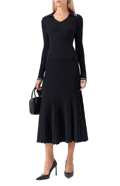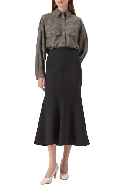 Льняная миди-юбка вошла в коллекцию Archive. Слегка расклешенную модель с потайной молнией сбоку украсили фирменной золотистой эмблемой Oval T сзади.