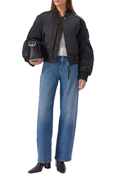 Косуху с воротником-стойкой выполнили из полиэстера с покрытием, имитирующего зернистую кожу. Сама oversize-куртка, четыре кармана и манжеты модели застегиваются молниями. Сзади — металлическая фирменная эмблема Oval T.