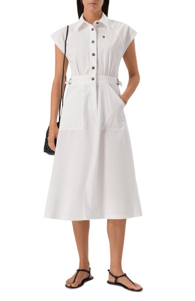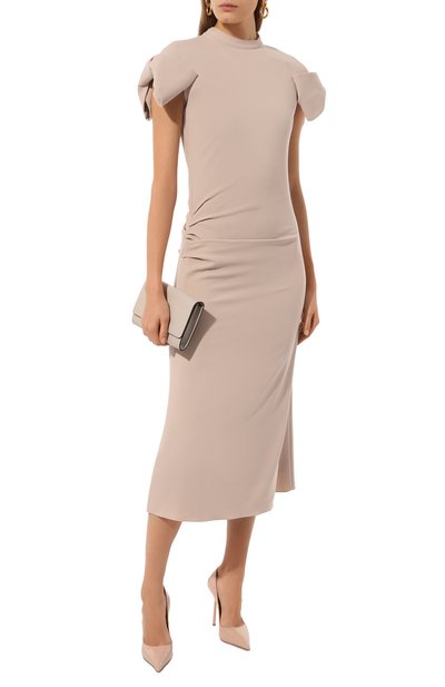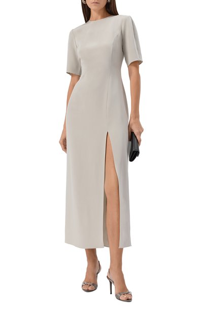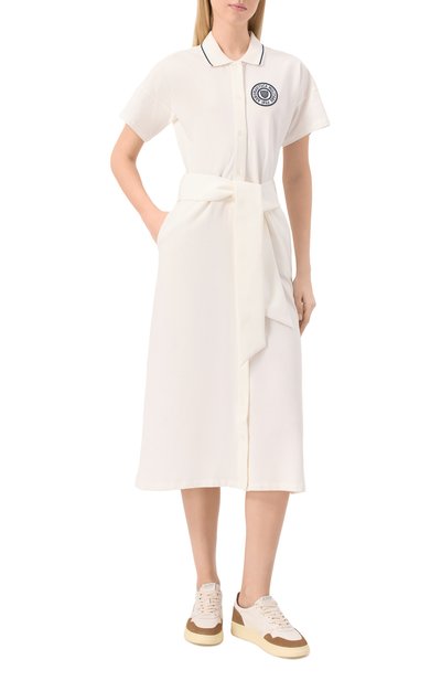 Платье-футболку Marvin с подплечниками, драпировкой и боковым разрезом выполнили из джерси на основе органического хлопка. Приталенная модель с цельнокроеными рукавами застегивается потайной молнией сзади.