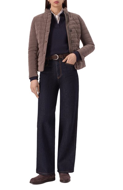 Укороченную пуховую куртку Faenza-S3 из коллекции Aqua выполнили из влагостойкой стрейчевой тафты на основе полиамида. Модель с боковыми карманами на молниях и застегивающимися наглухо лацканами дополнили съемным нагрудником с воротником-стойкой и поясом-шнуром с крупным карабином.