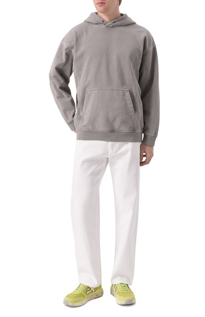 Текстильные кроссовки Yamano 3 укрепили фигурными деталями из замши и гладкого полимера. Модель с фирменной перфорацией по бокам и антибактериальной пробковой стелькой поставили на скульптурную амортизирующую подошву.