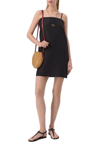 Миди-платье Floom с боковыми разрезами выполнили из ажурного трикотажа на основе переработанной вискозы. Модель с глубокими V-образными вырезами и завязками сзади декорировали на спинке серебристой пластиной с выгравированным логотипом.