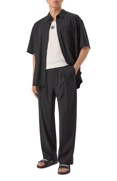 Кожаные шлепанцы Double Band украсили логотипом, напечатав его на формованной стельке. Верх с двумя ремешками велкро установили на полимерную подошву в тон.