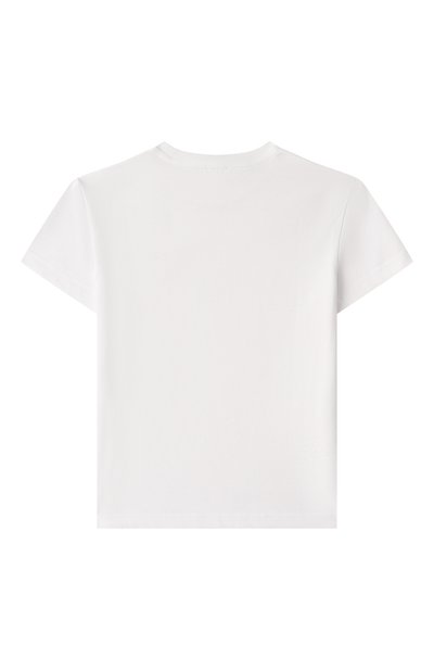 Для пошива модели с круглой горловиной выбрали джерси из чистого хлопка. Футболку украсили голографическим логотипом марки.