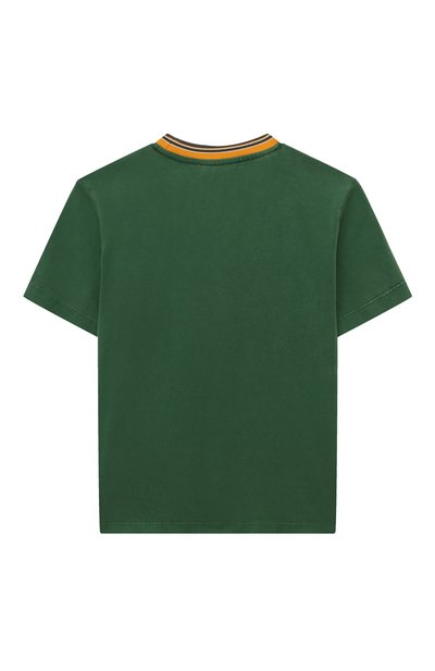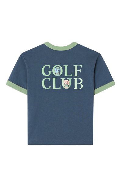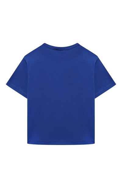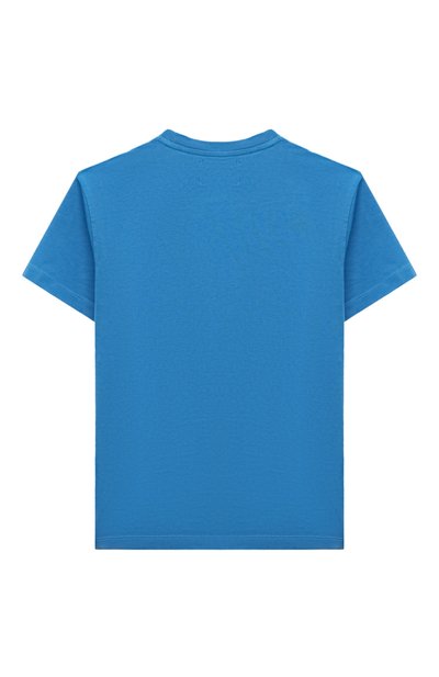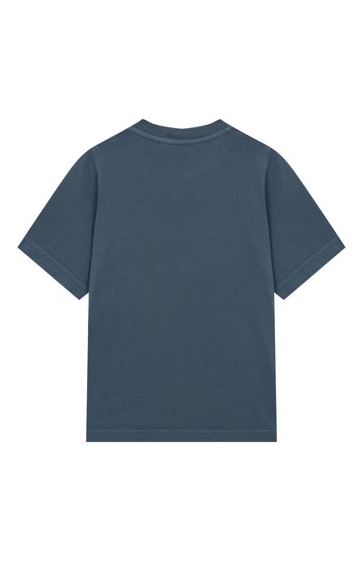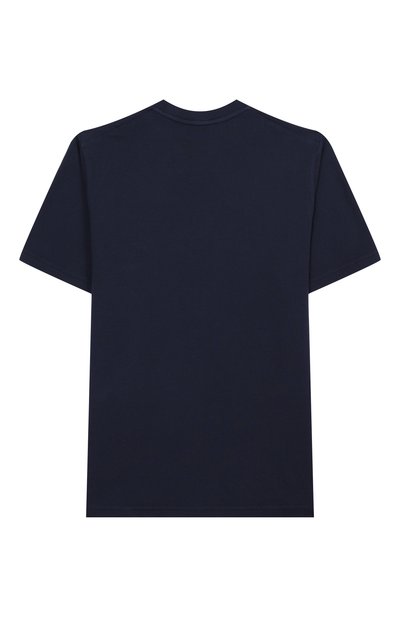 Для пошива футболки с градиентным окрашиванием использовали хлопковое джерси. Спереди модель декорировали контрастным логотипом марки.