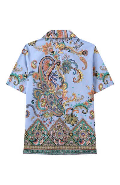 Хлопковая рубашка с акварельным рисунком и повторяющимся логотипом станет акцентом в летнем образе с однотонным низом. Модель на контрастных брендированных пуговицах дополнили накладным нагрудным карманом.