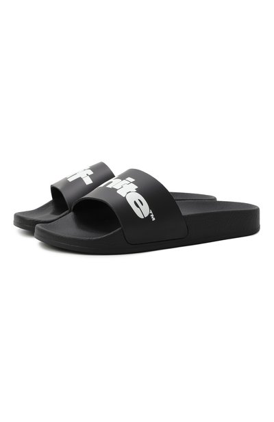 Шлепанцы с формованной стелькой украсили контрастным логотипом на перемычках. Модель на широкой подошве с протектором подойдет и для пляжа, и для отдыха у бассейна.