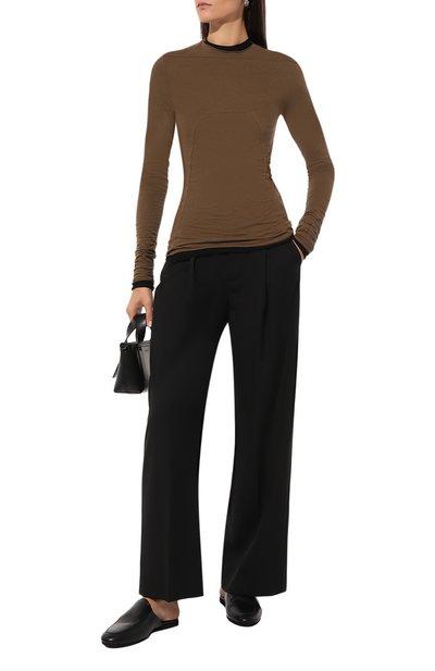 Лонгслив выполнили из эластичного полиамида с брендированным принтом Fresco. Фирменная надпись Off под горловиной облегающей модели напоминает штамп.