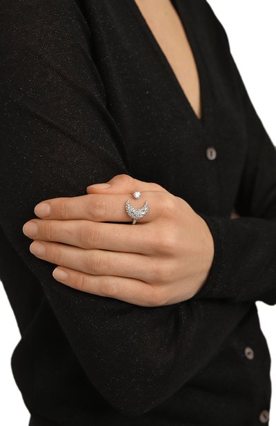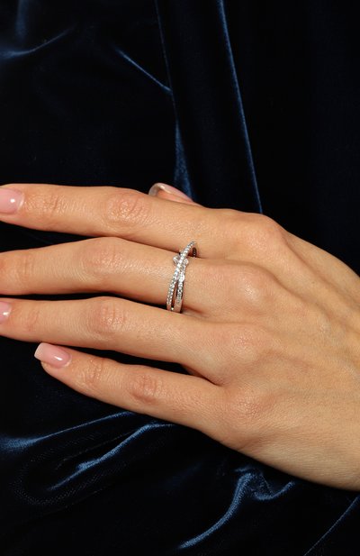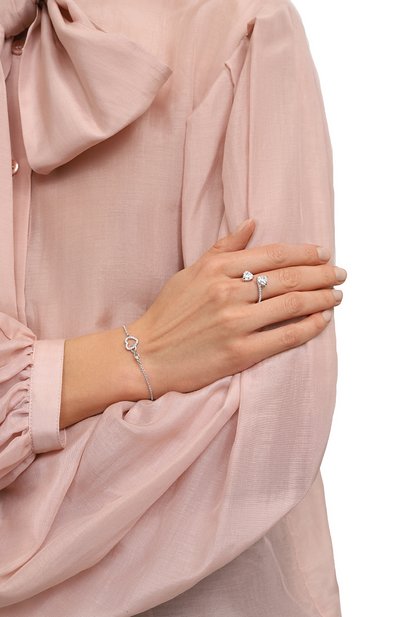 Незамкнутое кольцо Mesmera Attract выполнили из хрома с ионным покрытием нитридом титана. Украшение с прозрачным паве украсили двумя крупными кристаллами сердцевидной огранки.