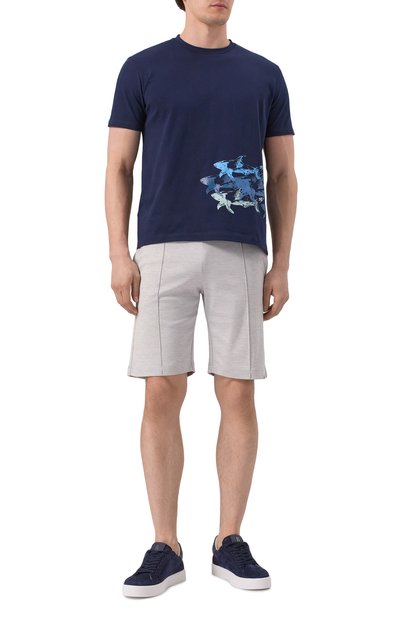 Широкие шорты Uno с меланжевым шевронным мотивом выполнили из микса льна и лиоцелла. Модель с задним и парой боковых карманов дополнили эластичным поясом-кулиской.