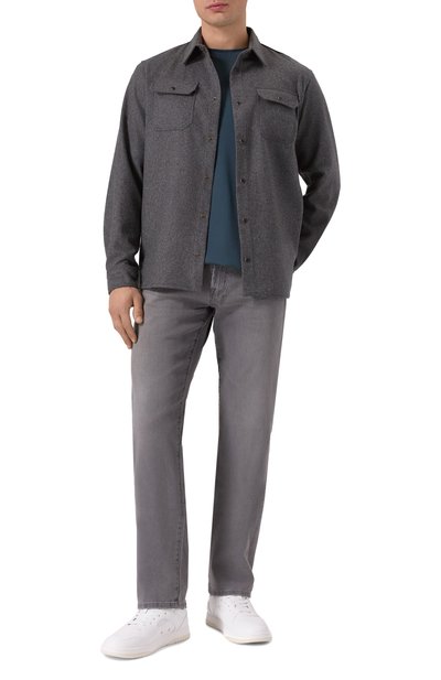 Футболка с небольшими разрезами по бокам и круглой горловиной сшита из фактурного джерси на основе лиоцелла и хлопка. Модель прямого кроя украшена сзади миниатюрным акульим плавником.