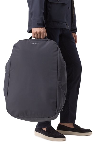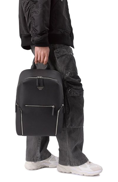 Рюкзак с брендированной нашивкой спереди, плечевыми лямками из ленты грогрен и короткой ручкой выполнили из кожи. Аксессуар на встречной молнии дополнили внешним и внутренними карманами.