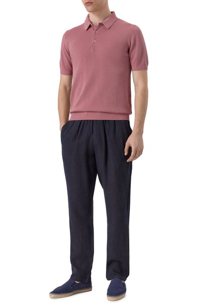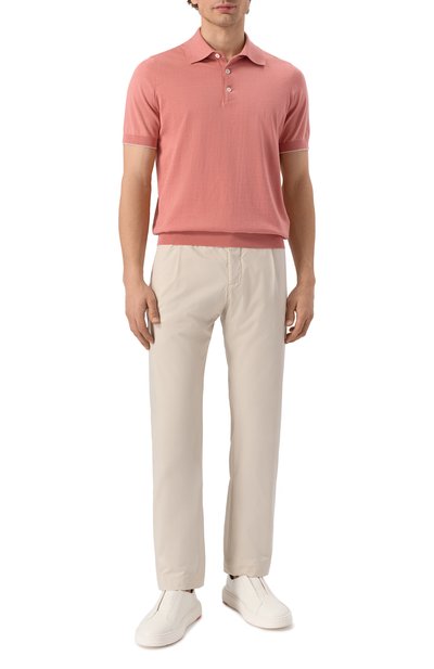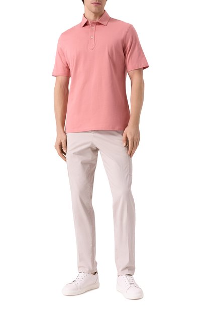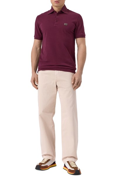 Поло с рифлеными манжетами, поясом и планкой выполнили из хлопкового трикотажа. Модель с двумя перламутровыми пуговицами украсили фирменной нашивкой Shark tag внизу.