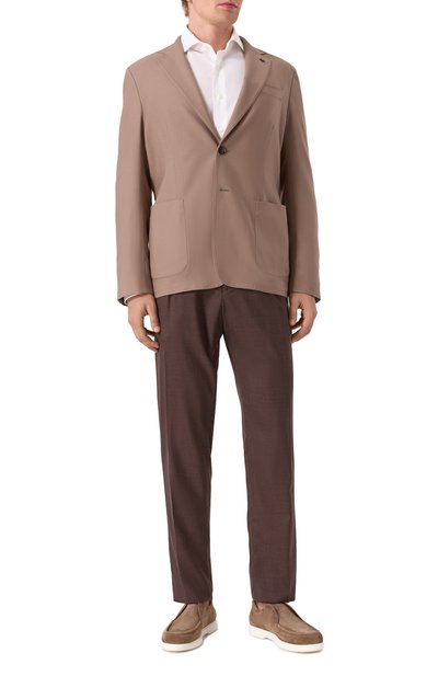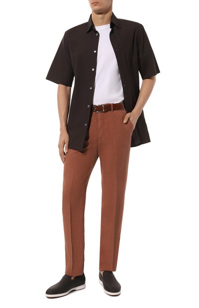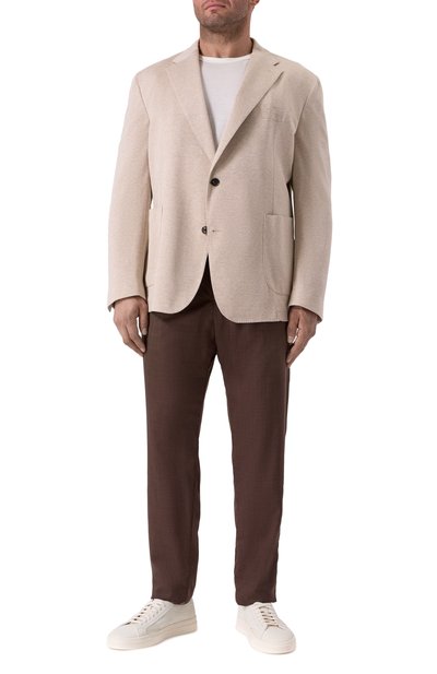 Широкие брюки со вставками double knee выполнили из плотной хлопковой ткани, напоминающей деним. Модель с тремя парами карманов и петлей hammer loop дополнили кнопками снизу и на поясе, с помощью которых можно регулировать посадк у.