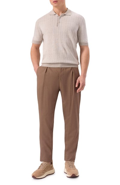 Широкие брюки со вставками double knee выполнили из плотной хлопковой ткани, напоминающей деним. Модель с тремя парами карманов и петлей hammer loop дополнили кнопками снизу и на поясе, с помощью которых можно регулировать посадку.