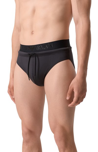 Плавки с поясом-кулиской и низкой посадкой сшиты из быстросохнущего полиамида, напоминающего пике. Эластичная модель украшена сбоку нашивкой с эмблемой бренда.