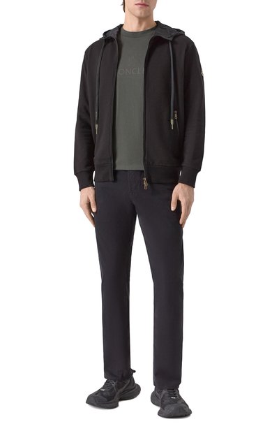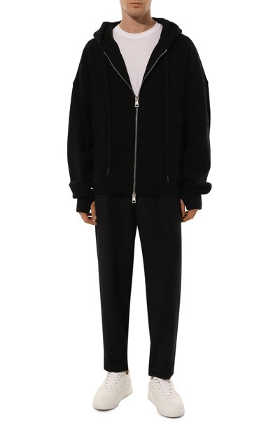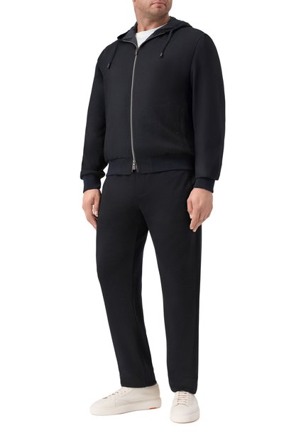 Толстовка украшена на спинке крупной эмблемой Arrow, совмещенной с принтом Barber, а слева груди – логотипом марки. Для пошива модели с двумя карманами и регулируемым капюшоном использовали хлопковый футер.