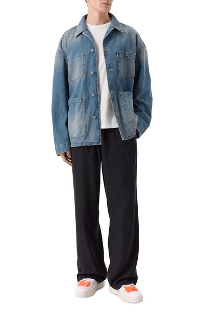 Кеды Out Of Office из гладкой кожи украшены брендированными надписями и аппликациями в виде стрелок и звезд. Пару с текстильным сетчатым язычком и внутренней отделкой из переработанного полиэстера установили на широкую резиновую подошву. Шнуровку можно дополнить съемным брелоком, входящим в комплект.