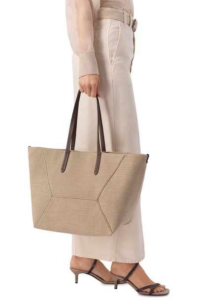 Сумку-тоут BC Duo выполнили из замши, а для внутренней отделки и длинных ручек выбрали мелкозернистую кожу. На боковых панел ях предусмотрели ремешки с цепочками мониль, которые можно соединить карабином и изменить форму аксессуара. Модель с тисненым логотипом застегивается магнитом, а съемная косметичка – молнией.