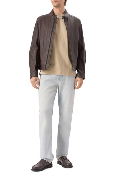 Для пошива бомбера Borello с воротником-стойкой и трикотажной отделкой в рубчик использовали мягкую кожу. Модель с хлопковым подкладом дополнили боковыми карманами и внутренним с застежкой.