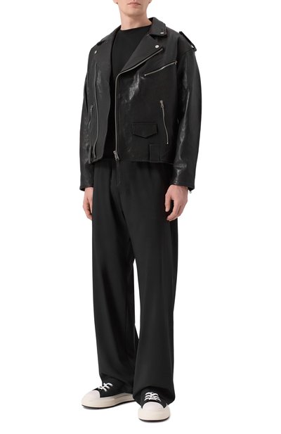 Бомбер Torino с трикотажными манжетами, поясом и высоким воротом выполнили из кожи. Сама куртка на текстильном подкладе, а также внутренний и пара внешних карманов застегиваются молниями.